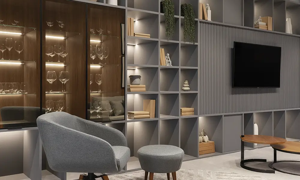 Essa sofisticação exige rigor técnico. O estudo de proporção entre cheios e vazios, o alinhamento preciso entre módulos e a continuidade de acabamentos são determinantes para que o resultado seja percebido como refinamento, e não como simplificação excessiva. Em móveis planejados, a precisão milimétrica sustenta a sensação de ordem e permanência que caracteriza o minimalismo atual.