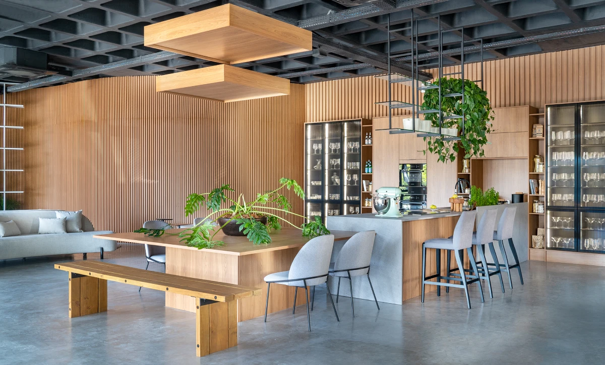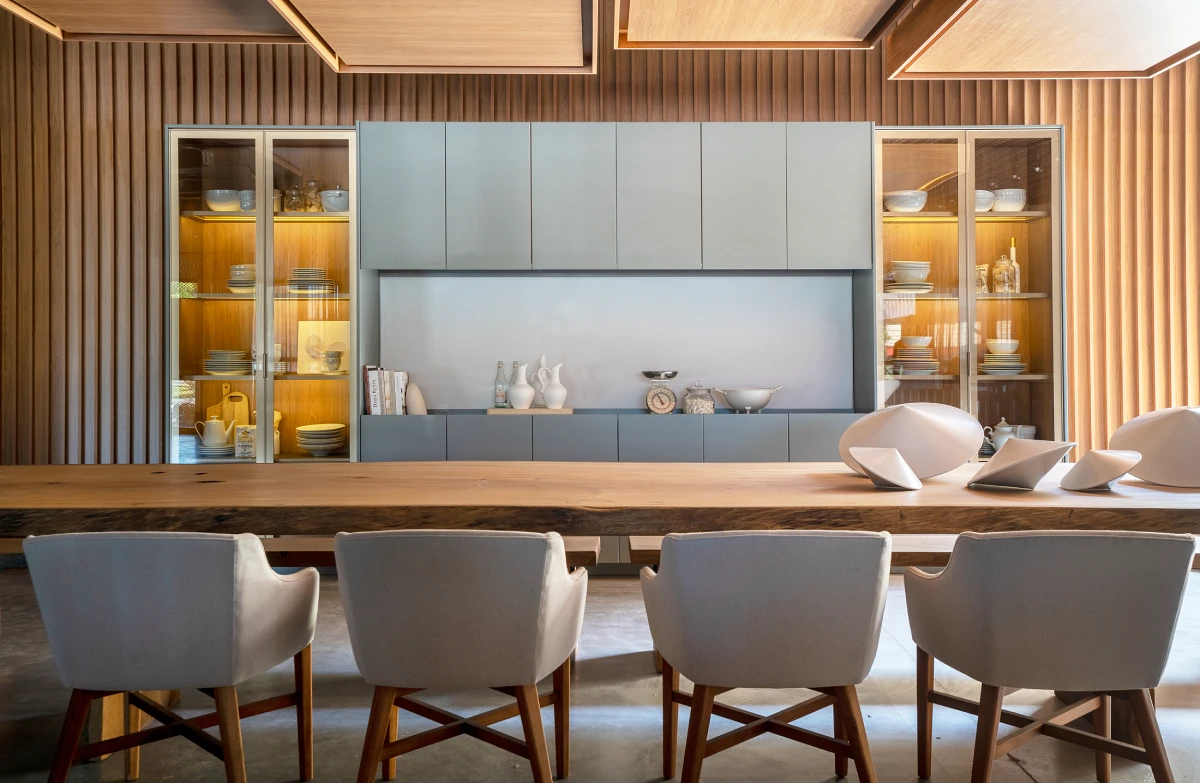 No showroom exclusivo da Criare, localizado no parque fabril, em Bento Gonçalves, é possível vivenciar a proposta da nova coleção. Foram criadas ambientações conceituais, composta por três cozinhas, um living e uma adega, que mostram toda a fluidez e contemporaneidade dos novos produtos, e também um apartamento decorado de 200m², que traz seis ambientes versáteis e funcionais, que mesclam as novidades da marca.