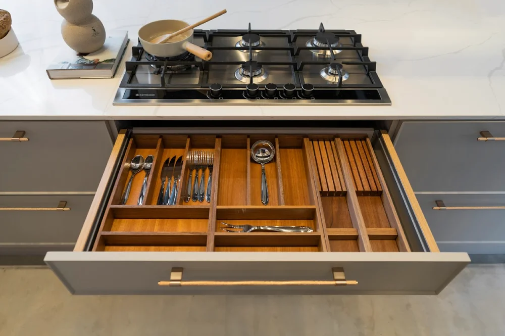 Conhecer as opções de móveis planejados para a cozinha é um dos passos para deixar o ambiente mais aconchegante e funcional. No que se refere especificamente à bancada, é aconselhável escolher uma que ofereça praticidade e usabilidade,  para que as tarefas diárias sejam realizadas com facilidade. Uma bancada com gavetas e armários embutidos auxilia na organização do espaço da cozinha, visto que permite que os utensílios e os alimentos sejam armazenados adequadamente.